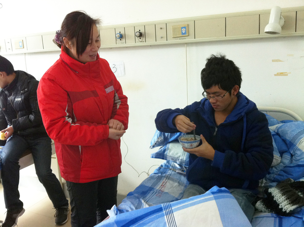 叫学生起床,帮学生收被子、打开水、缝补衣物,给生病的学生熬汤、送饭、买水果……
