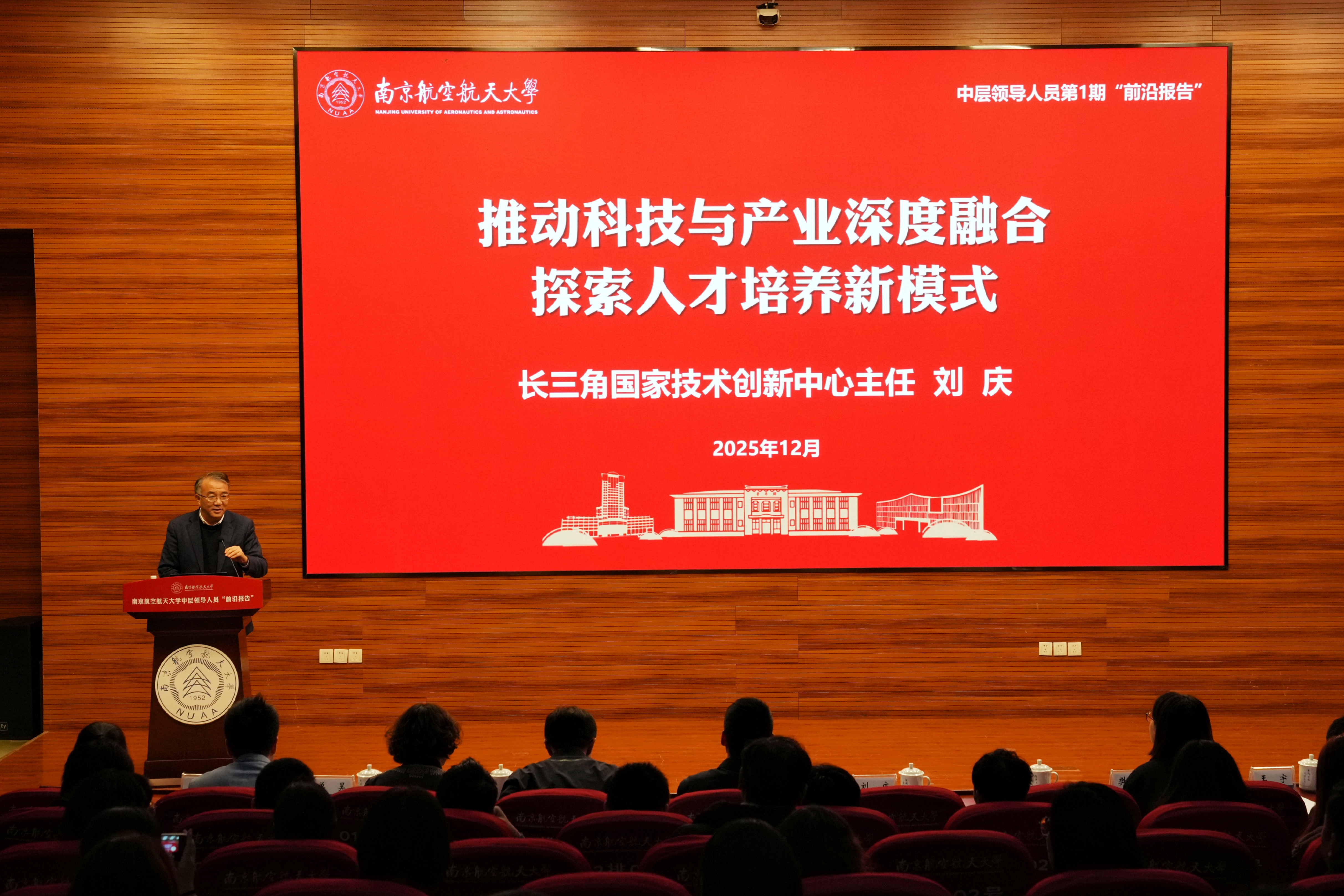 甄良在主持报告会时指出,学校党委举办中层领导人员“前沿报告”系列主题讲座,是深入贯彻落实党的二十届四中全会精神的重要举措,旨在推动广大干部紧密对接国家重大战略需求,紧跟科技前沿、产业前沿,高标准谋划推进“十年行动计划”,加快推进世界一流大学建设。他强调,广大干部要深入学习贯彻习近平总书记关于科技创新和产业创新深度融合的重要指示精神,提高思想认识、增强能力本领、强化担当作为,努力成为政治过硬、适应新时代要求、具备领导世界一流大学建设能力的南航好干部,加强与科研院所、重点企业产学研交流合作,培养一大批高层次卓越工程师,产出一大批高水平创新成果,有效推动科技成果转移转化与产业化,推动学校世界一流大学建设如期实现。