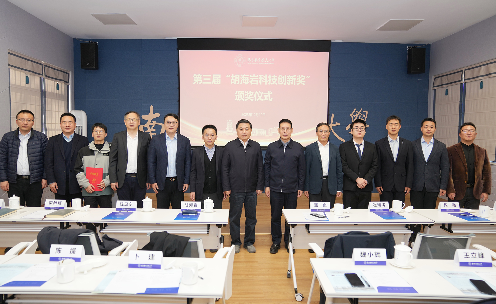 12月10日,第三届“胡海岩科技创新奖”颁奖仪式在我校明故宫校区校友之家举行。中国科学院院士胡海岩,校党委书记甄良,副校长崔海涛出席活动。仪式由副校长张启钱主持。