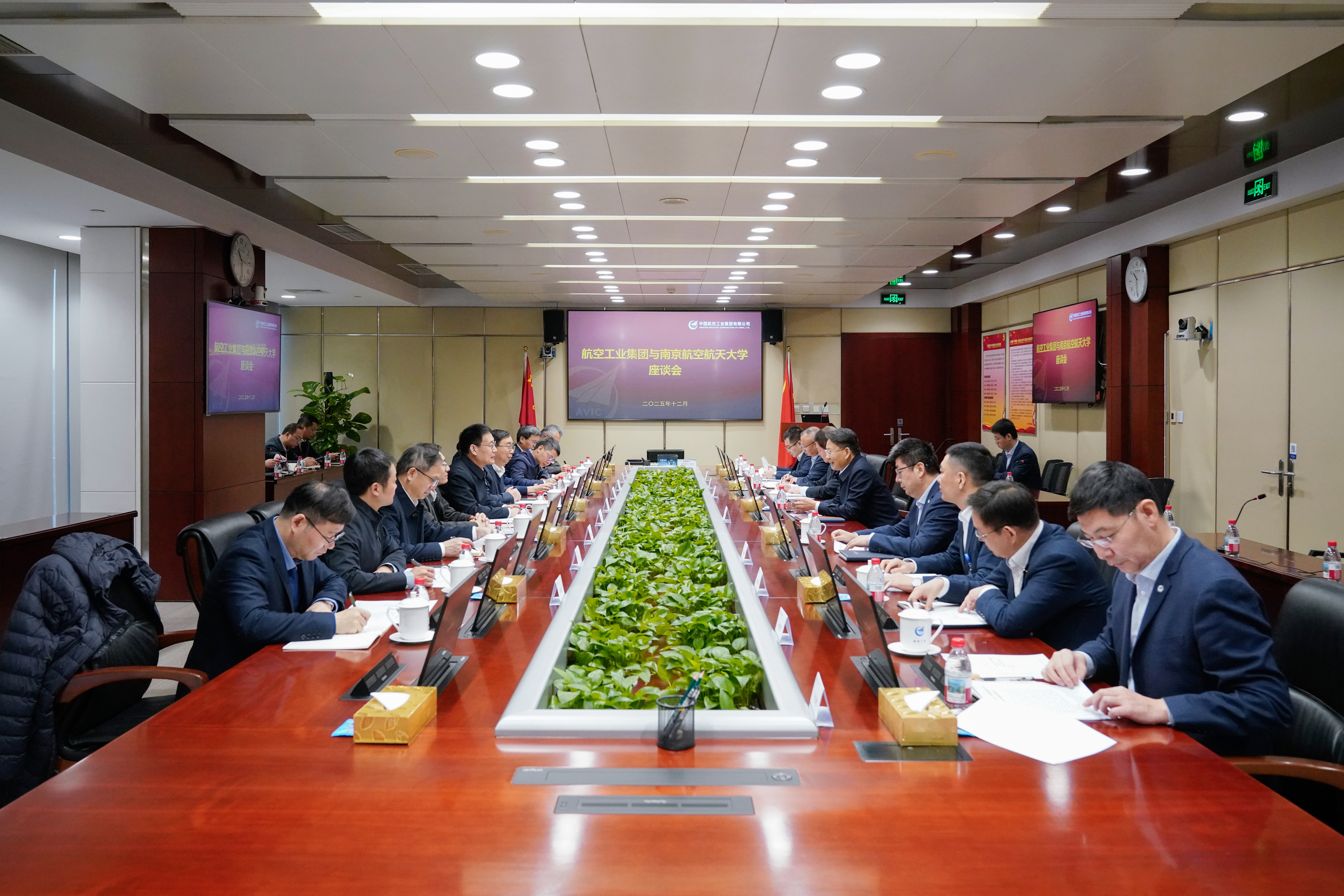 姜斌向航空工业集团长期以来对南航事业建设发展的支持帮助表示感谢。他表示,双方合作基础扎实、合作成果丰硕,“十四五”以来通过平台共建、项目共担、人才共育等一系列深度协同机制,共建了以直升机研究院为代表的一批科技创新平台,共育了一批有应用、有影响的科技成果。展望“十五五”,希望双方进一步深化全面战略合作,加强战略协同联动,在共建更高能级的协同育人平台、共筑更前沿的产学研融合创新联合体、共促更深层的文化交融与传承等方面加大合作力度,更好赋能双方未来高质量内涵式发展,携手为航空强国建设提供更加坚实有力的支撑。