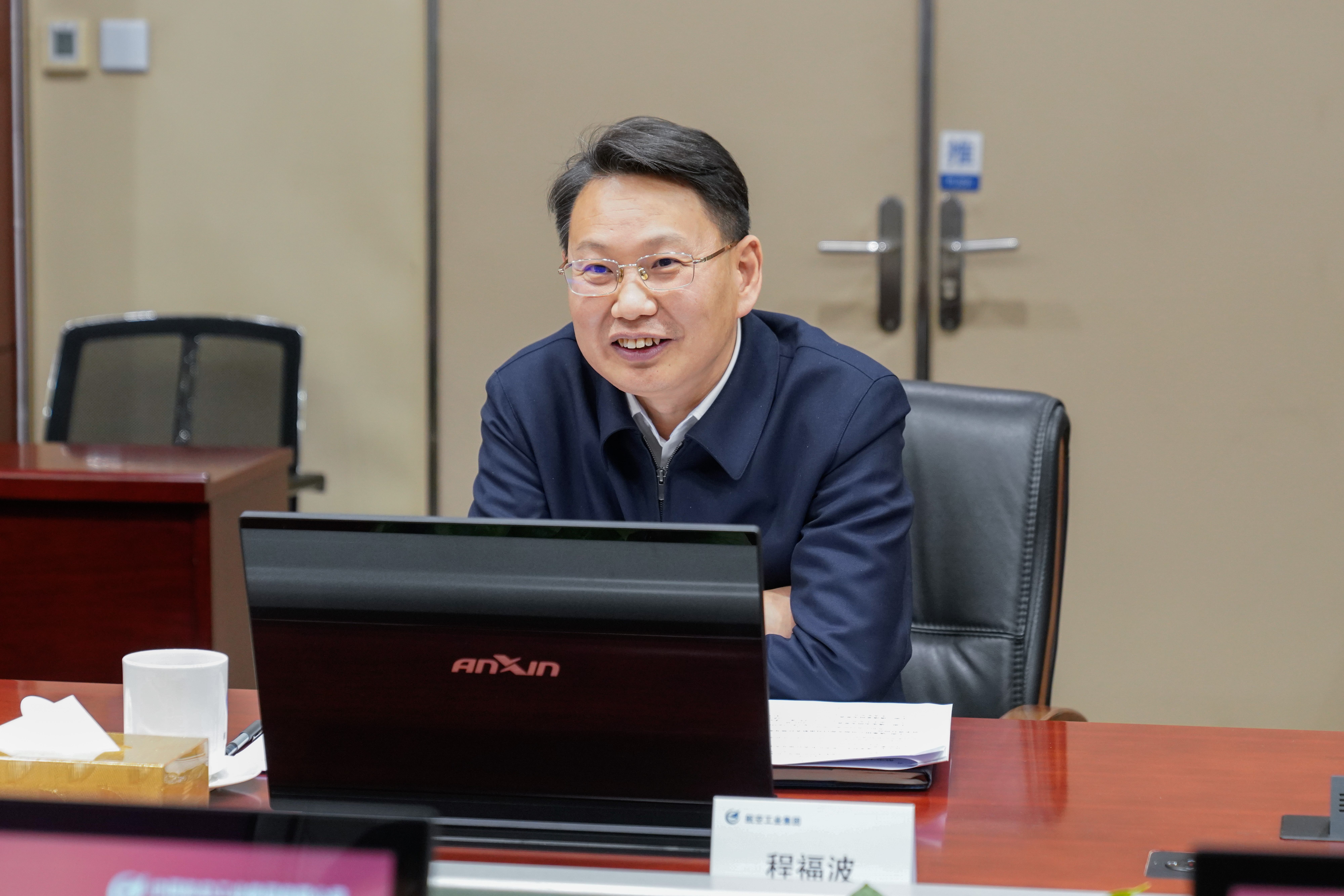 程福波向甄良、姜斌一行表示热烈欢迎,向南航对中国航空工业发展的大力支持表示感谢。他指出,航空工业集团与南航使命相通、文化相近,双方长期以来在高水平创新平台共建、关键技术协同攻关、高层次人才培养与输送等方面开展了大量的务实合作,为航空领域人才培养、科研创新做出了重要贡献。他强调,当前航空工业集团正加速构建现代航空工业体系,亟需南航在基础研究、应用基础研究、高端人才供给上持续支持。希望双方立足我国航空事业发展全局,聚焦航空工业发展急需的 “卡脖子” 技术,加强直升机、无人机等重点领域的产学研深度融合,加速推进航空装备迭代升级,携手为我国航空事业发展作出新的更大贡献。