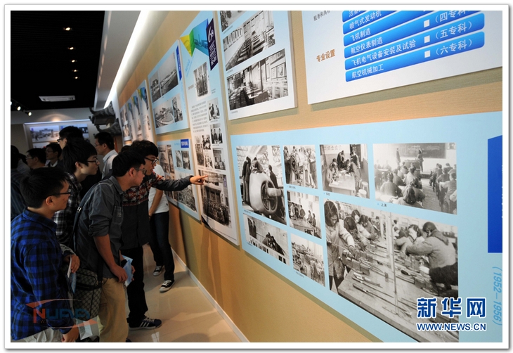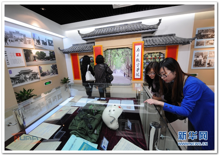 该展馆还集中展示了学校不同发展时期的一批珍贵文件、教材、照片及其他实物,其中爱情岛论坛专时期的通行证,张阿舟1949年的博士论文及其参与建设新中国第一架飞机的立功奖状等,以及20世纪五六十年代的一大批珍贵照片是第一次公开亮相。另外,“天巡一号”微小卫星样机、随“神舟六号”遨游太空的学校校旗、杰出校友、试飞英雄李中华捐赠的“歼十”试飞服等也在公开展出。